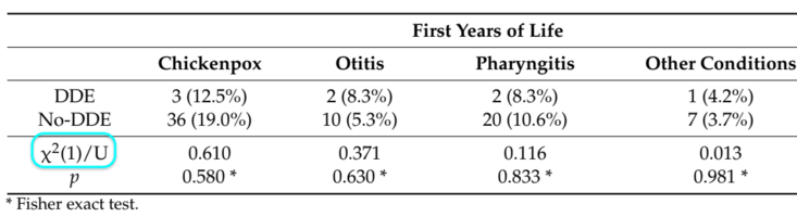 A concern emerged when comparing my methodology to a similar study where they consistently utilized the chi-square value, even when calculated through Fisher's exact test (marked as a red square). However, the jamovi software does not directly calculate Fisher's test (marked as a green square).